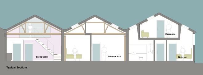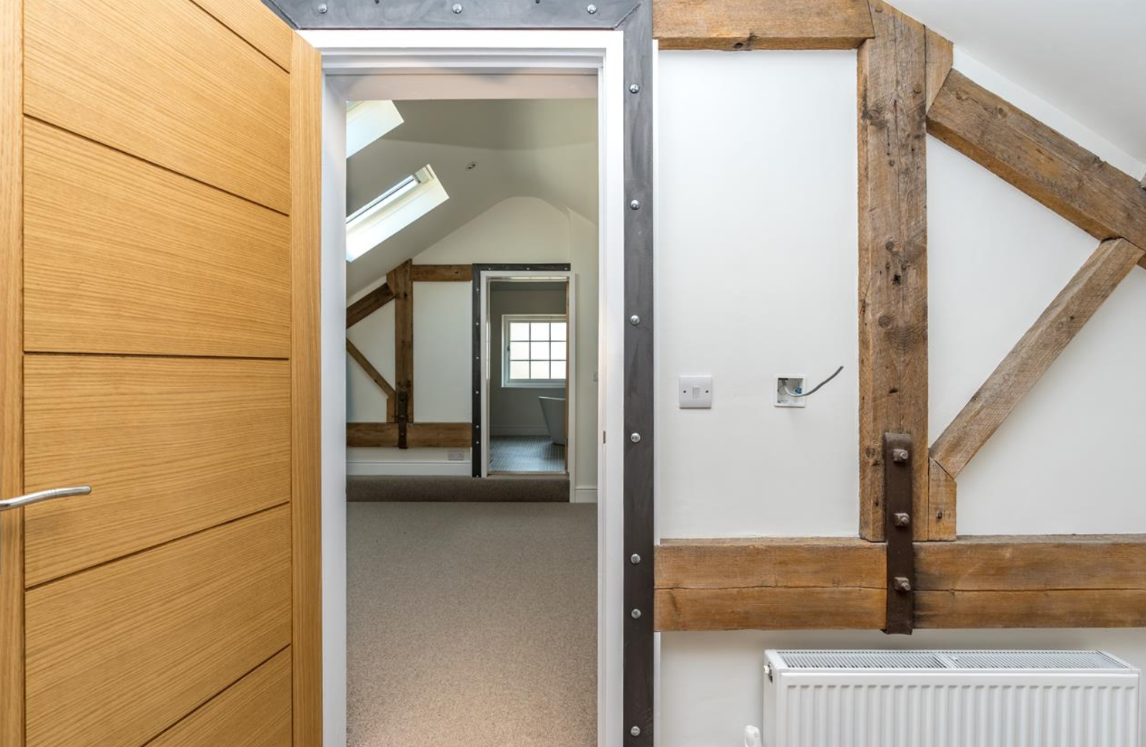 Under permitted development legislation, we secured approval to convert an existing agricultural barn into four distinctive homes. The original timber structure has been carefully preserved, allowing its character to be experienced throughout each property. The main living spaces rise to the full height of the barn, creating generous, light‑filled interiors, while the bedrooms are illuminated by rooflights that bring in soft, natural daylight from above.